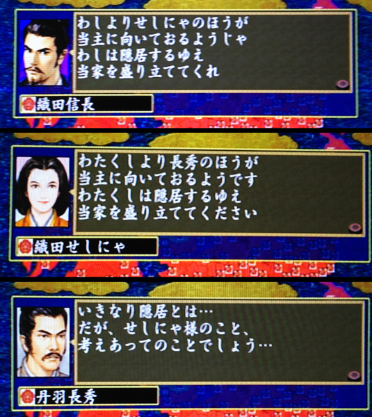 要訳:ノブ「お前がやれ」 私「あなたがやって」 ニワ「ではそれがしが…」