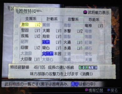 ・単騎駆で能力アップにもチャレンジしようと思いましたが、大将を上手く撃破出来ないので断念;どの能力が上がるのもイマイチよく分からないですし;相手より下回ってる能力がランダムで一つだけ上がるのかしら…?