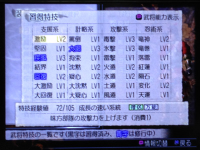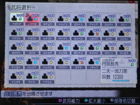 武将収集も1回のプレイで可能な全武将を集められました。これだけ枠が埋まってると壮観ですなあ。